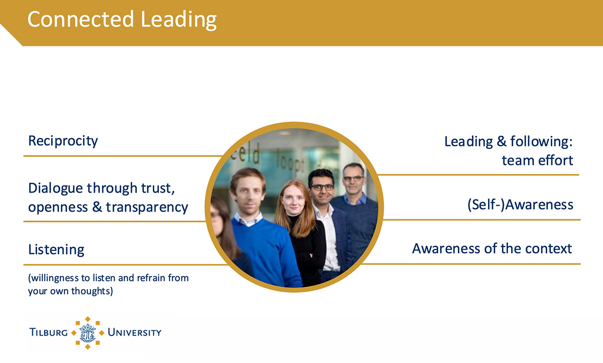 More information about Connecting leading, please contact Stefan van der Meer (project leader Connecting Leading) at S.vdrMeer@tilburguniversity.edu or Elke van Cassel (project manager Recognition & Rewards) at E.vanCassel@tilburguniversity.edu.